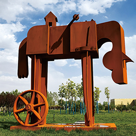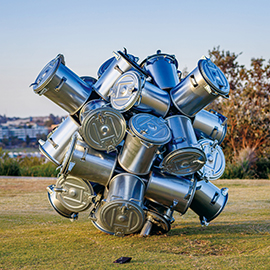 オーストラリアの作家。過去 35 年間、彫刻家として活動してきた彼は、プロフェッショナルとして幅広く芸術活動を行っており、地域から国内外の展示会、委託制作、カンファレンスプログラム、技術指導、展示会のコンサルティング等に積極的に携わっています。彼の作品は、回転、浮遊、空間、光、影などの様々な要素がバランスを取り、正と負の構成を生み出す抽象的な構造です。これらの彫刻は、明るさと奥行きを与える鮮やかな色彩が印象的で、空間に華やかなシルエットを作り出します。国内外の多くの公共、個人、企業のコレクションに収蔵されています。